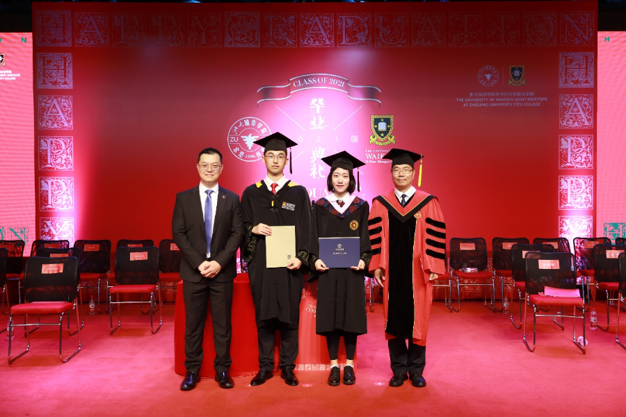 (2021年首届毕业典礼,左一为时任新西兰驻沪总领事Mr.Stephen Wong)
