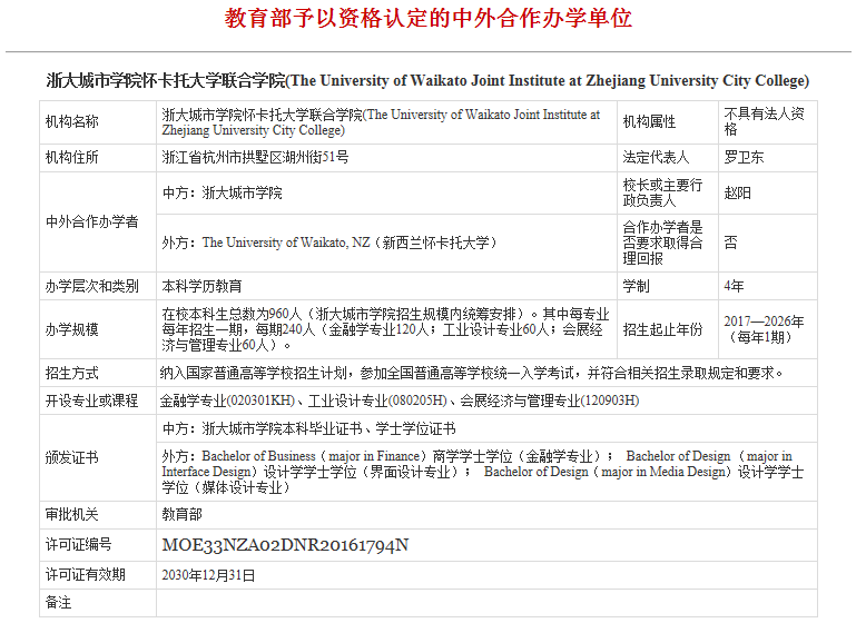 新西兰UW学院开设金融学(中外合作办学)、工业设计(中外合作办学)、会展经济与管理(中外合作办学)三个专业。合作专业融合两校优势,具有专业对接契合度高、师资力量雄厚、教学条件优异、实验设施齐全、学生实践条件好等特点。新西兰UW学院全面引入怀卡托大学的教学理念和优质教育资源,按照新西兰高校通用的专业认证体系和怀卡托大学的教学评估体系,建立符合中新双方标准的教学质量管理体系,制定透明、兼容的质量标准,怀卡托大学派遣高素质师资承担主要专业课程的教学工作;学院全面对接地方经济社会发展需求,围绕“数字”和“应用”打造专业特色,紧扣城市产业发展脉搏,培养服务区域经济和社会发展、全面推进城市国际化的高级人才。