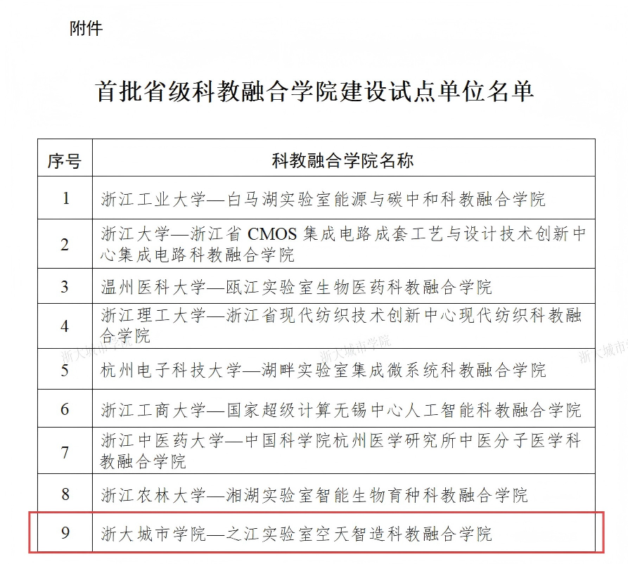 7月4日 浙江省教育厅办公室公布了首批省级科教融合学院建设试点单位名单。久久精品一区二区|久久久一区二区三区|欧美日韩视频|欧美福利视频|高清欧美性猛交xxxx黑人猛交|久久久www成人免费精品|在线观看成人网站——之江实验室空天智造科教融合学院成功入选!是入选的全省9家单位中唯一一所市属高校,标志着学校在科教融合创新领域的探索获得高度认可!