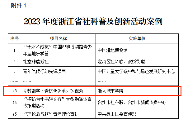 我校“《数数字·看杭州》系列短视频”获评全省社科普及创新活动案例2024.05.14